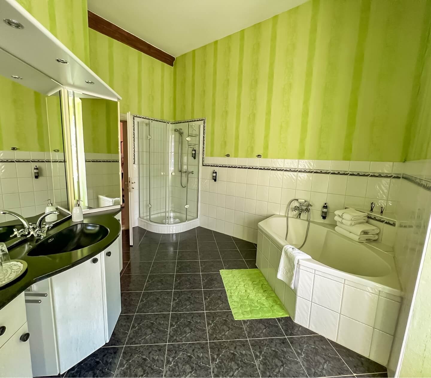 Dieses Zimmer befindet sich im vierten Stock des Kastells und ist damit unser höchstgelegenes Zimmer des gesamten Hotels. Aus dem geräumigen Wohnzimmer haben Sie durch die Bleiglasfenster einen schönen Blick auf den Schlosspark. Von hieraus können Sie mit dem Bademantel in unseren Wellness- und Beautybereich gelangen. Das Zimmer ist insgesamt 34 m² groß.